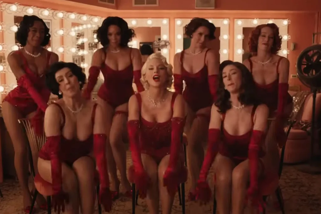 Swift seamlessly transitions between these classical references and modern, playful visuals. At one point, she performs in a flapper-inspired costume with a brunette wig, engaging in a choreographed dance, and later finds herself aboard a pirate ship, only to emerge in a mid-century synchronized swimmer outfit, clutching a life raft. These sequences symbolically represent buoyancy and resilience, tying into the song’s central theme: her fiancé Travis Kelce’s love saving her from a metaphorical “fate of Ophelia.”