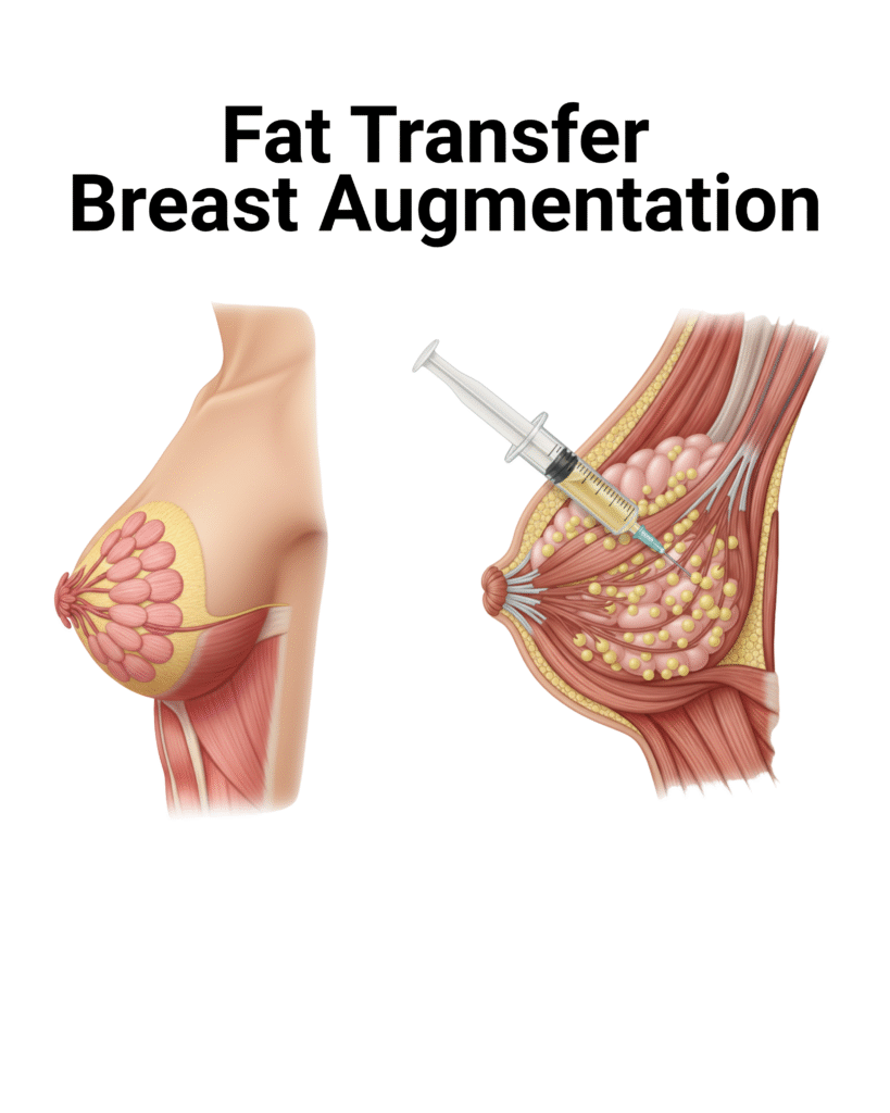 The procedure involves harvesting fat from areas such as the abdomen, thighs, or flanks, purifying it, and carefully injecting it into the breast to rebuild shape and volume.